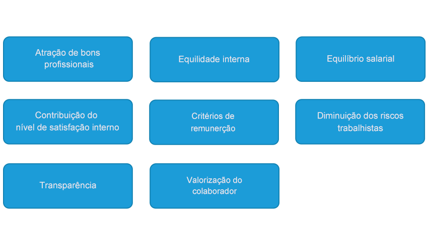 A estrutura de cargos, carreiras e salários bem elaborada permite a definição de responsabilidades e atribuições de cada cargo, melhor entendimento do organograma e funcionalidade das áreas da empresa, níveis de salário compatíveis com a realidade e pretensões da empresa e com o mercado. Além do mais, permite a empresa se estruturar quanto ao plano de carreira dos colaboradores, normatizando as condições de ingresso, enquadramento, ascensão, regime de trabalho e progressão do colaborador, fechando assim um ciclo importante e fundamental para a gestão de pessoas.